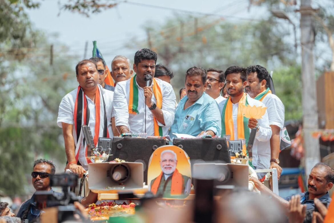 கோவை தெற்கில் அண்ணாமலை சூடான பிரச்சாரம்: கனிமொழி மீது கடும் விமர்சனம்
