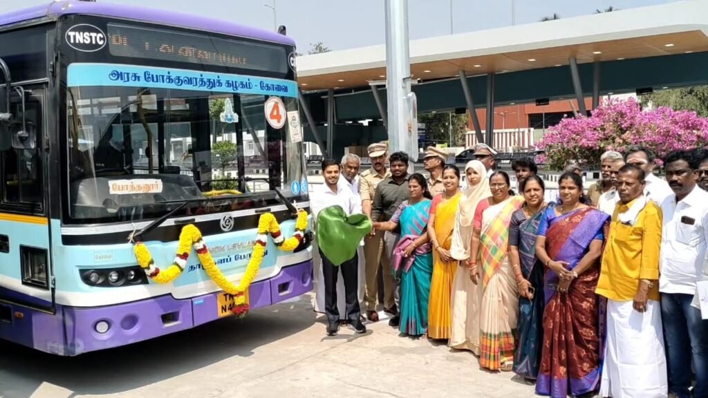 கோவையில் நடைபெற்ற நிகழ்ச்சியில் உக்கடம் பேருந்து நிலையத்தில் பேருந்து சேவையை துவக்கி வைத்த மாவட்ட ஆட்சியர், மற்றும் மாநகராட்சி ஆணையாளர் பேருந்தில் பயணம் செய்து பயணிகளிடம் கலந்துரையாடினர்.