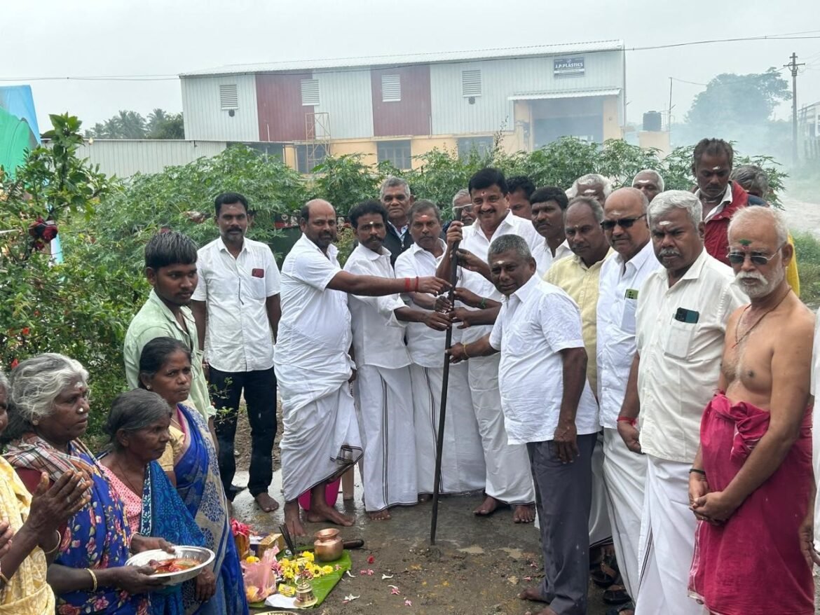 கலையரங்கத்துக்கு கான்கிரீட் அமைக்கும் பணியை துவக்கிவைத்தார் சட்டமன்ற தொகுதி உறுப்பினர் பி.ஆர்.ஜி.அருண்குமார்