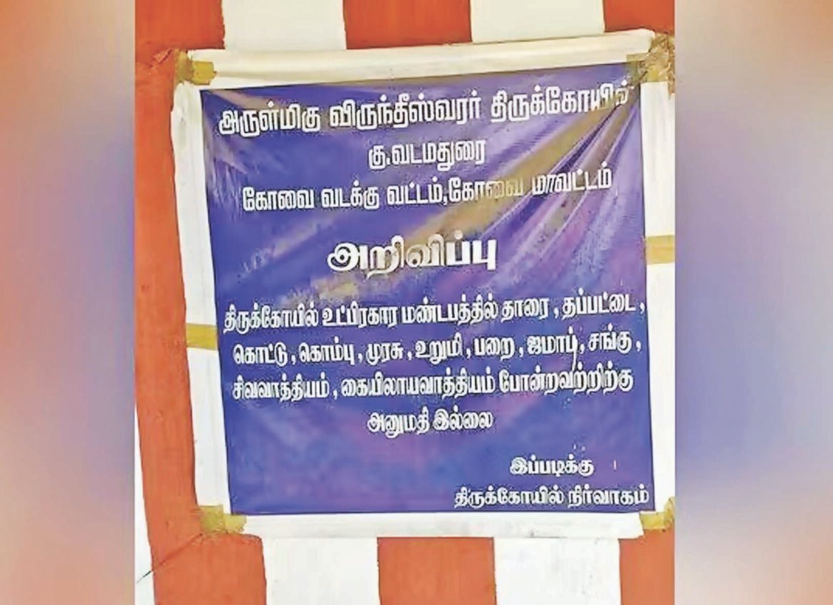காலம் காலமாக கோவிலில் இசைக்கப்பட்டு வந்த வாத்திய கருவிகளை இசைக்க தடை விதித்தது அப்பகுதியில் பெரும் பரபரப்பை ஏற்படுத்தியது.