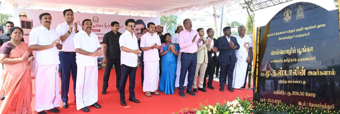 கோவை காந்திபுரம் பகுதியில் ரூபாய் 208.50 கோடி செலவில் உருவாக்கப்பட்ட செம்மொழி பூங்காவை தமிழக முதலமைச்சர் மு.க.ஸ்டாலின் இன்று திறந்து வைத்து பார்வையிட்டார்.