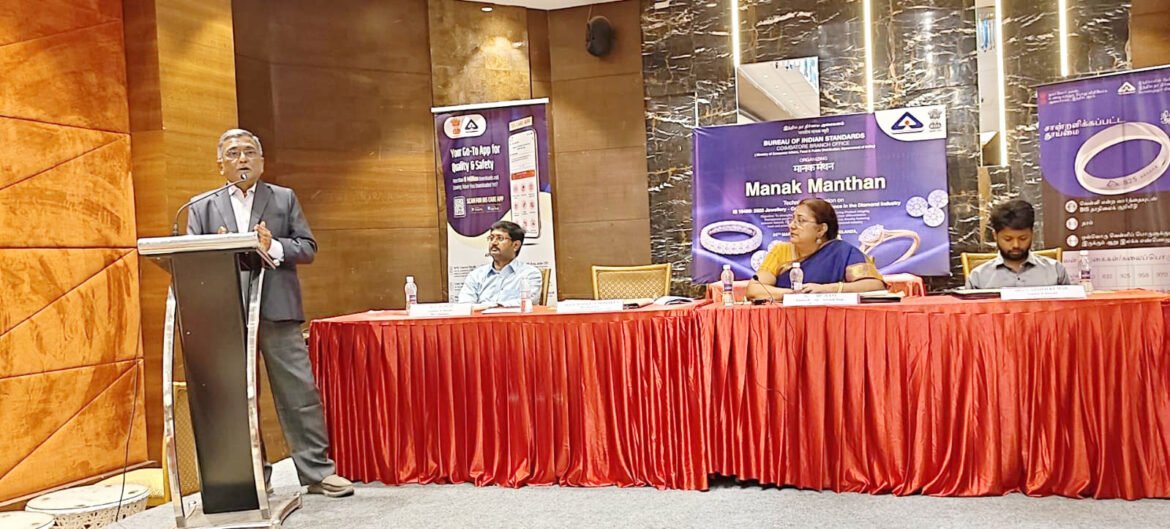 இந்திய தர நிர்ணய அமைவனம் கோயம்புத்தூர் அலுவலகத்தின் சார்பில் வைர நகைகள் உற்பத்தியில் கடைபிடிக்க வேண்டிய தரநிலைகள் குறித்த விழிப்புணர்வு கருத்தரங்கம் காந்திபுரம் பகுதியில் உள்ள தனியார் ஹோட்டலில் நடைபெற்றது.