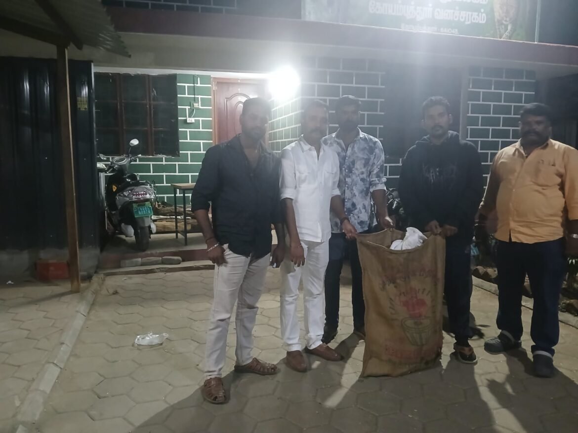 இதையடுத்து, உடனடியாக ‘ஃபிரண்ட்ஸ் ஆப் வைல்ட் லைஃப்’ அமைப்பினருக்கு தகவல் அளிக்கப்பட்டது. சம்பவ இடத்திற்குச் சென்ற வன உயிரின ஆர்வலர்கள், நீண்ட நேர போராட்டத்திற்குப் பிறகு முள்ளம்பன்றியை பாதுகாப்பாக பிடித்து சாக்குக்குள் அடைத்து, கோவை மாவட்ட வன அலுவலகத்தில் வனத்துறையினரிடம் ஒப்படைத்தனர்.