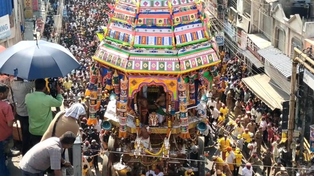 அதனை தொடர்ந்து பக்தர்களுக்கு அன்னதானம் வழங்கப்பட்டது.மேலும் தேர் பவானி நடைபெறுவதால் டவுன் ஹால் முழுவதும் போக்குவரத்து மாற்றம் செய்யப்பட்டுள்ளது போலீசார் வாகனங்களை மாற்று பாதையில் திருப்பி விட்டனர்.இந்த பகுதியில் சுமார் ஆயிரத்துக்கும் மேற்பட்ட போலீசார் பாதுகாப்பு பணியில் ஈடுபட்டுள்ளனர்.