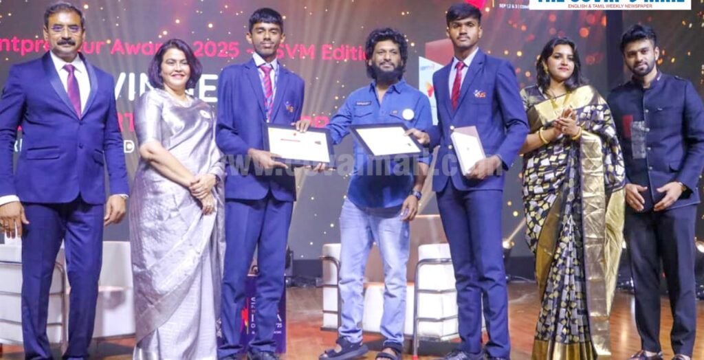 The winners included Ronak Kolsa, Arnav Saraf, and Naithik Agarwala of Chinmaya International Residential School, who received the first prize of ₹75,000. The second prize of ₹50,000 went to Daya Vishnu Kumaran of Sri Ramana Academy Senior Secondary CBSE School, while the third prize of ₹25,000 was awarded to D.S. Sarvesh Aditya, H. Shiv Sarvesh, and Sashwath R.S. of PVM Global School. The awards were presented by Dr. Manimekalai Mohan, Dr. Raja Sabapathi (Head of Plastic Surgery, Ganga Hospital), and other distinguished guests.